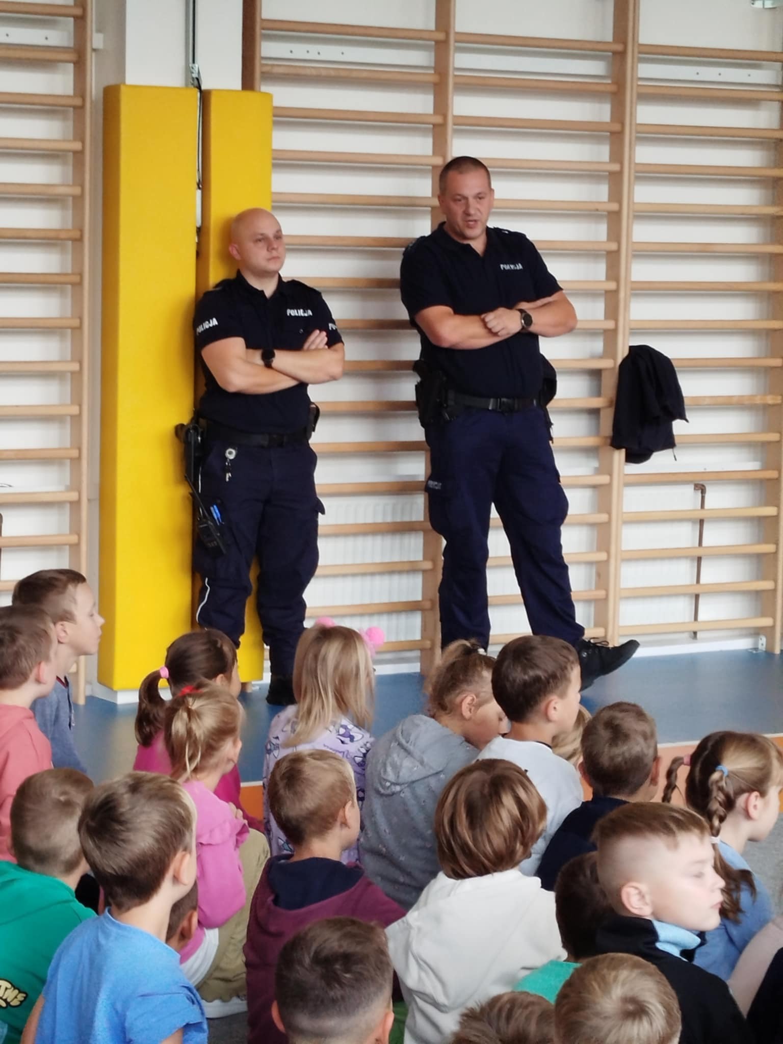 26 września gościliśmy w szkole panów policjantów z Komisariatu Policji w Tymbarku z siedzibą w Zawadce. Funkcjonariusze spotkali się z uczniami klas 1 -8. Głównym celem ich przybycia było uświadomienie młodym ludziom, jak należy poruszać się po drogach, właściwie korzystać na nich z rowerów i hulajnóg. Uczniowie chętnie słuchali rad, brali udział w rozmowie, zadawali pytania. Mundurowi poruszyli też kwestię skutków prawnych, jakie ponoszą rodzice i młodzież zachowująca się nieodpowiednio na drodze. Policjanci pouczyli uczniów o zachowaniu szczególnej ostrożności w kontaktach z nieznajomymi osobami. Po pogadance dzieci z klas pierwszych pod opieką pań i naszych gości udały się na zewnątrz, aby utrwalić w praktyce zdobytą wiedzę.