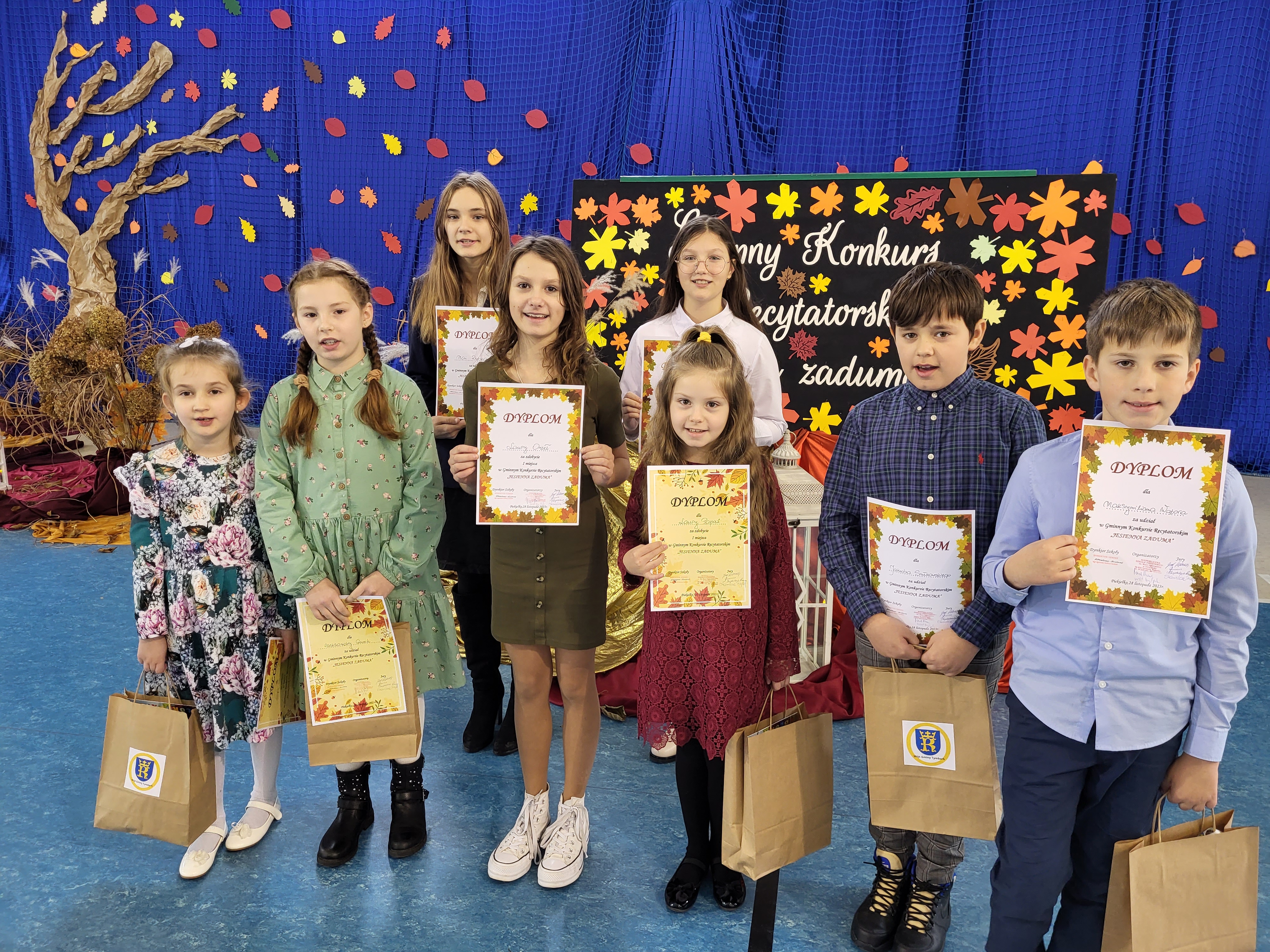 28 listopada odbył się gminny Konkurs Recytatorski "Jesienna zaduma" zorganizowany przez Niepubliczną Szkołę Podstawową im. Marii Dąbrowskiej w Piekiełku. Mimo wyjątkowo zimowej aury młodzi recytatorzy wprowadzili publiczność w jesienny klimat dzięki swoim interpretacjom wierszy o jesieni. Wśród nagrodzonych znaleźli się oczywiście uczniowie naszej szkoły. W kategorii klas I-III Laura Papież zdobyła I miejsce, a Zofia Szewczyk miejsce II. W kategorii klas IV-VIII zwyciężyła Laura Orzeł, zaś Sara Wdowicka zdobyła wyróżnienie. Naszą szkołę reprezentowali także Aleksandra Guzik, Jakub Sułkowski, Maksymilian Wątor i Maja Rybka. Serdeczne gratulacje!