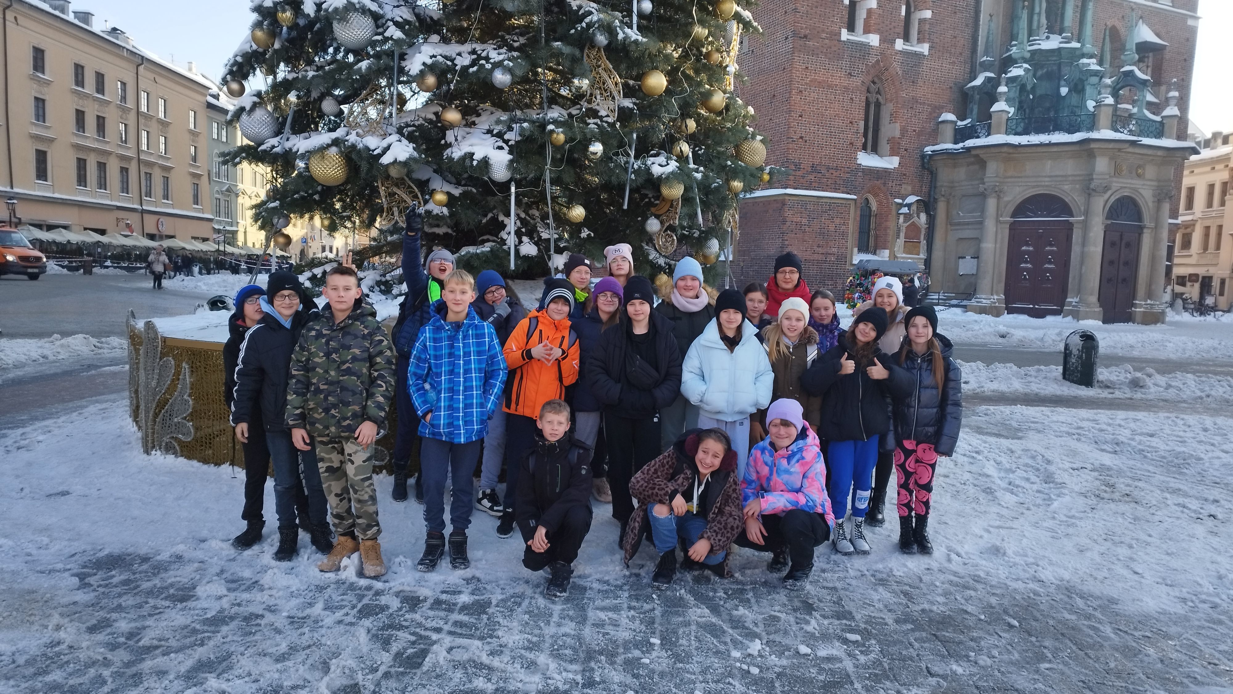 W oczekiwaniu na przybycie Świętego klasa 5B wraz z opiekunkami udała się na wycieczkę klasową do Krakowa. Pierwszym punktem programu był jarmark świąteczny na krakowskim Rynku oraz wspólne zdjęcie z piękną choinką. Potem uczniowie udali się do Muzeum Iluzji, gdzie niektórym dosłownie zakręciło się w głowie - zapewne od nadmiaru wrażeń. Na koniec czekała wszystkich solidna porcja ruchu i zabawy w parku trampolin. Zmęczeni, ale zadowoleni, udaliśmy się w drogę powrotną do Tymbarku.