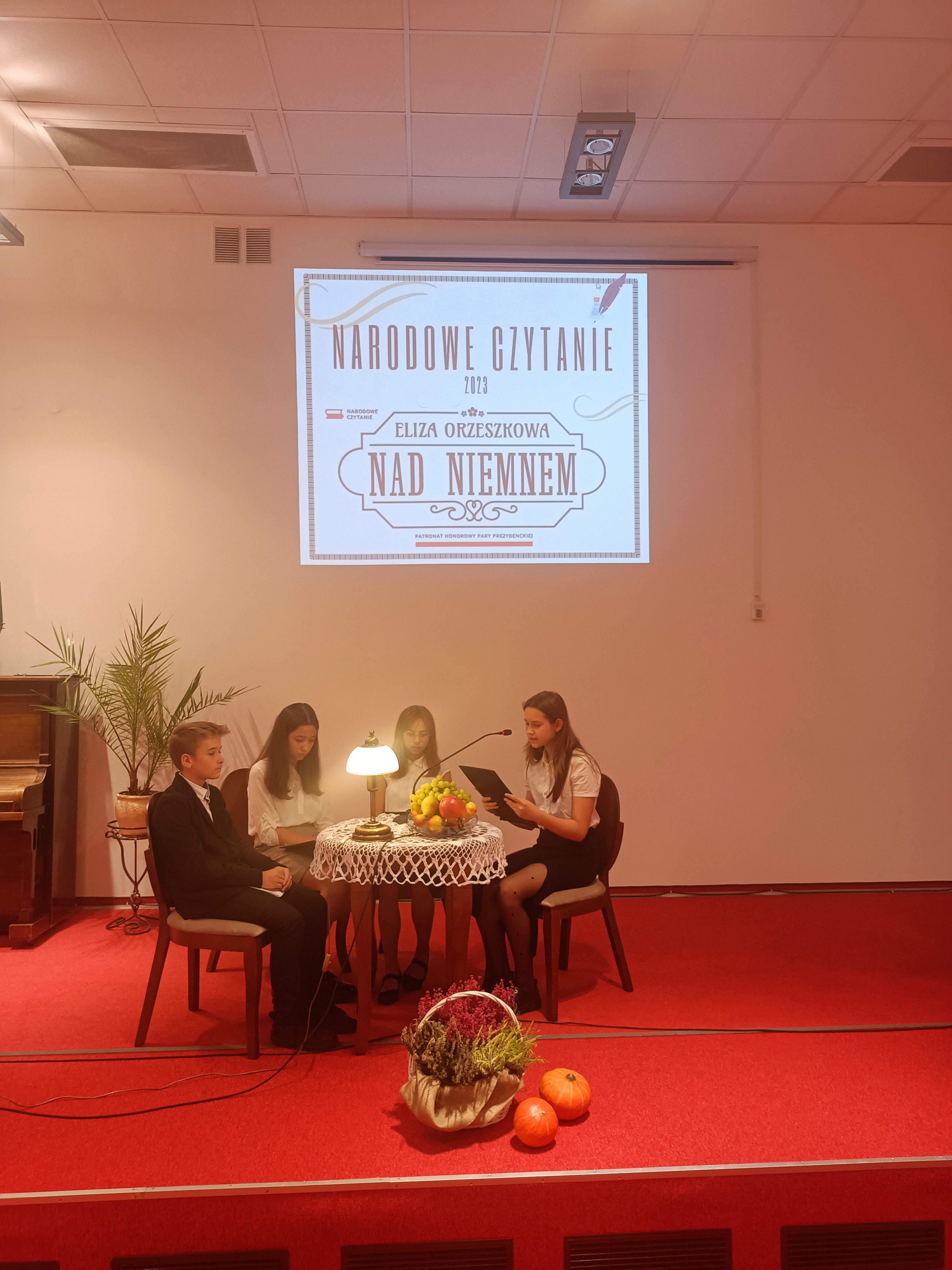 8 września 2023 r. w Bibliotece Publicznej uczniowie naszej szkoły: Karolina Baran 6B, Marlena Łękawa 6B, Aleksandra Garbacz 6A, Julia Kulig 6A, Michał Duda 7B, Mikolaj Wolfinger 7C, Fabian Poręba 7C, Emilia Kurek 7C, Laura Wilczyńska 7C oraz polonistka Jowita Janik wzięli udział w Narodowym Czytaniu. W tym roku były to fragmenty powieści Elizy Orzeszkowej „Nad Niemnem”. Na zakończenie było pamiątkowe, wspólne zdjęcie oraz rozdanie przez pana wójta okolicznościowych kubków.
