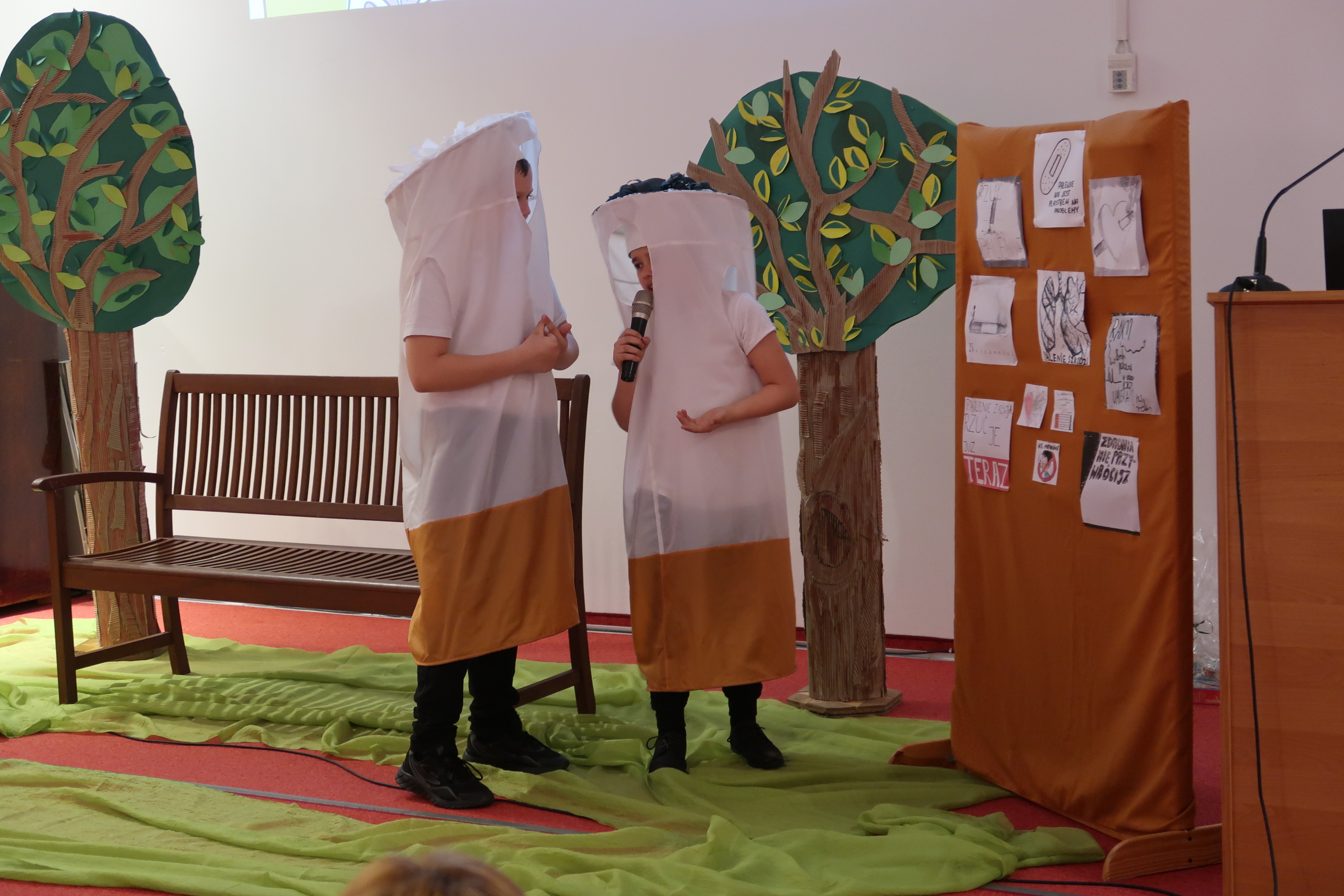 Zespół ,,Wesoła gromada” w składzie: Laura Orzeł, Malwina Faron, Filip Kęska i Jakub Sułkowski z przedstawieniem „ Historia Peta-Pyta” w I kategorii zdobył pierwsze miejsce. W spektaklu poruszono problem palenia papierosów przez młodych ludzi.