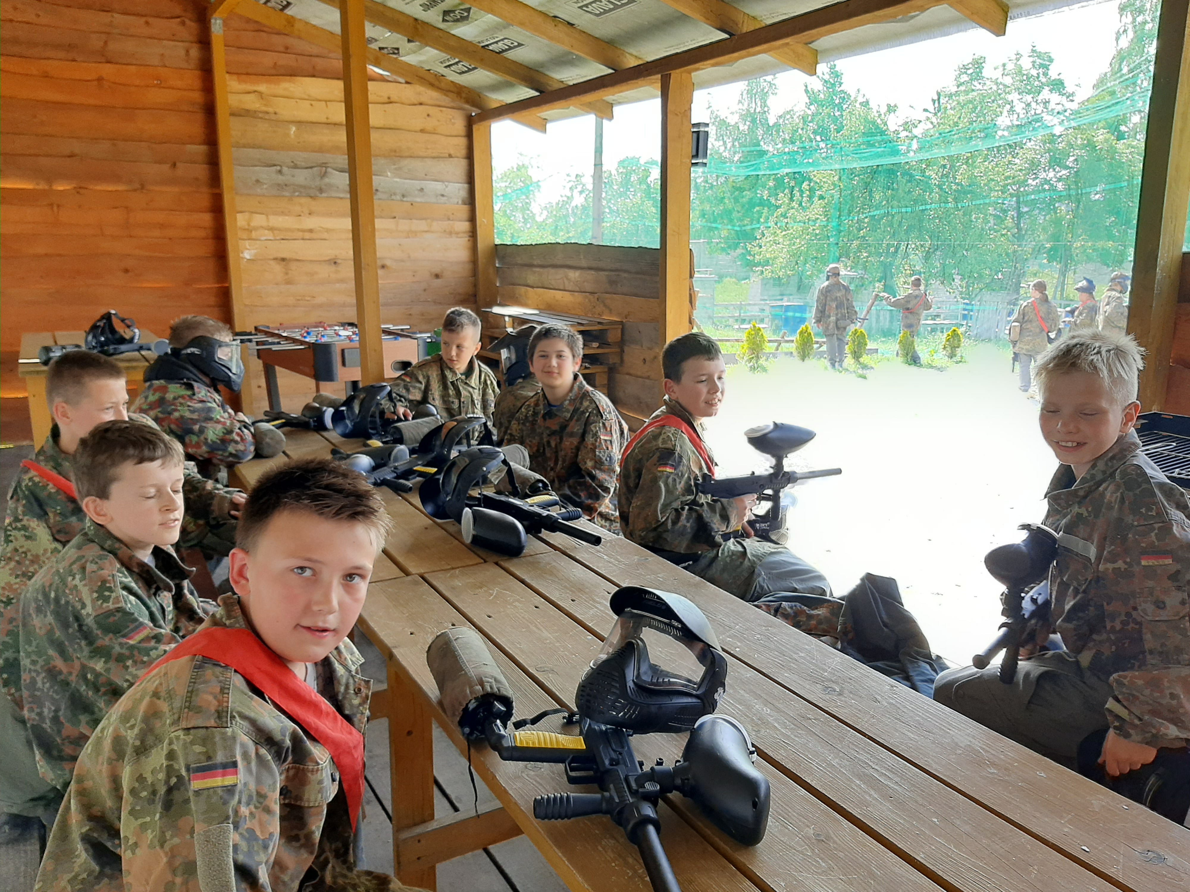 1 czerwca br. z okazji Dnia Dziecka nasza klasa 4a pojechała na wycieczkę, aby zagrać w paintball. Zebraliśmy się pod szkołą ok. godziny 9.00. Nie zwlekając, wsiedliśmy do busa i pojechaliśmy do Męciny. Miejscowość ta jest niedaleko, ok. 10 km od Limanowej, więc droga minęła szybko. Na miejscu czekali już na nas prowadzący. Pospiesznie odłożyliśmy plecaki i nie mogąc się doczekać kulkowej zabawy, poszliśmy się przebrać w wojskowe stroje i maski. Dostaliśmy też specjalne pistolety i po kolei pan z obsługi wypełniał je kolorowymi kulkami, objaśniając zasady gry. Po zrobieniu pamiątkowego zdjęcia ze zniecierpliwieniem weszliśmy na pole wyznaczone do tej pełnej adrenaliny zabawy. Gra była długa i zacięta. Zasady polegały na tym, że jeśli kogoś raz trafi kulka, to musi zejść z pola z uniesioną ręką. Ukrywaliśmy się w bazach, za oponami, starymi deskami lub w wysokich trawach. Były dwie drużyny, które musiały nawzajem się „bić”. Było to lekko stresujące, ale też bardzo wciągające. Chciałoby się grać dalej, ale przyszła pora na osoby idące na paintball laserowy. Ubraliśmy specjalne opaski z czujnikami, dostaliśmy pistolety i poszliśmy grać. Gdy skończyły nam się „życia” i przeciwna drużyna przejęła flagę, opaska mocno drgała i trzeba było udać się do bazy, by się podładować. Oczywiście i ta rozgrywka dobiegła końca. Po zaciętej i wyrównanej grze przyszedł czas na posiłek. Wszyscy ze smakiem zjedli grillowane kiełbaski i wypili herbatę. Niestety, wszystko co dobre, szybko się kończy. Mimo że byliśmy brudni i zmęczeni, mieliśmy świetne humory. Przebraliśmy się z powrotem w nasze ubrania i udaliśmy się w drogę powrotną do Tymbarku. W szkole czekały na nas lody, które ochłodziły ten pełen przygód, ciepły dzień.