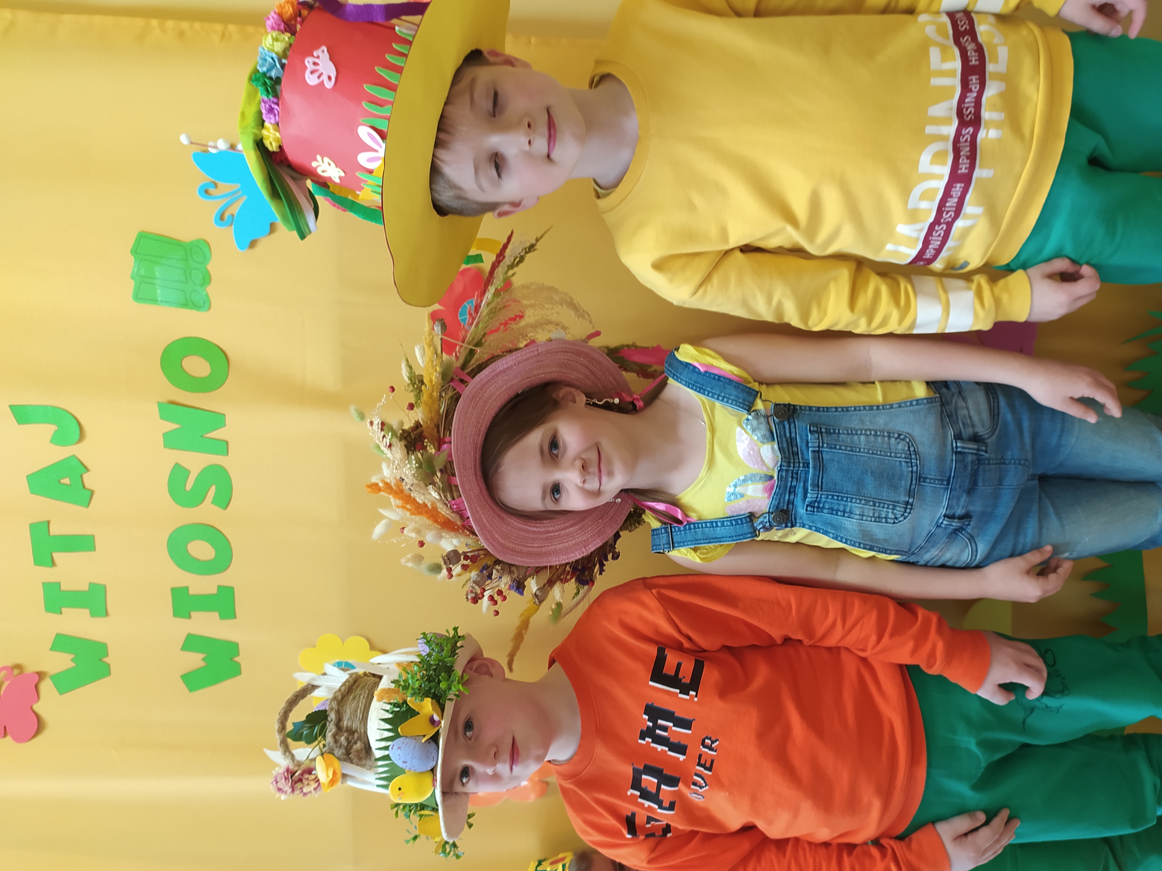 21 marca, czyli w Pierwszy Dzień Wiosny szkoła rozkwitła kolorowo, a to za sprawą dzieci ubranych we wszystkich odcieniach wiosny. Kwiaty ozdobiły nie tylko ich stroje. Własnoręcznie wykonane przez uczniów kwiaty udekorowały korytarze szkolne, po których dumnie, z podniesionymi głowami, spacerowały dzieci z przepięknymi nakryciami głowy, wykonanymi specjalnie na ten dzień. A miały czym się pochwalić, bowiem były to prawdziwe dzieła sztuki! Wybrane przez poszczególne klasy najciekawsze prace zostały przedstawione jury, a spośród nich zostali wyłonieni zwycięzcy konkursu „Wiosenne nakrycie głowy”, zorganizowanego przez Samorząd Uczniowski. Wybranie tych kilku okazało się nie lada wyzwaniem dla oceniających. Oto wytypowani laureaci: