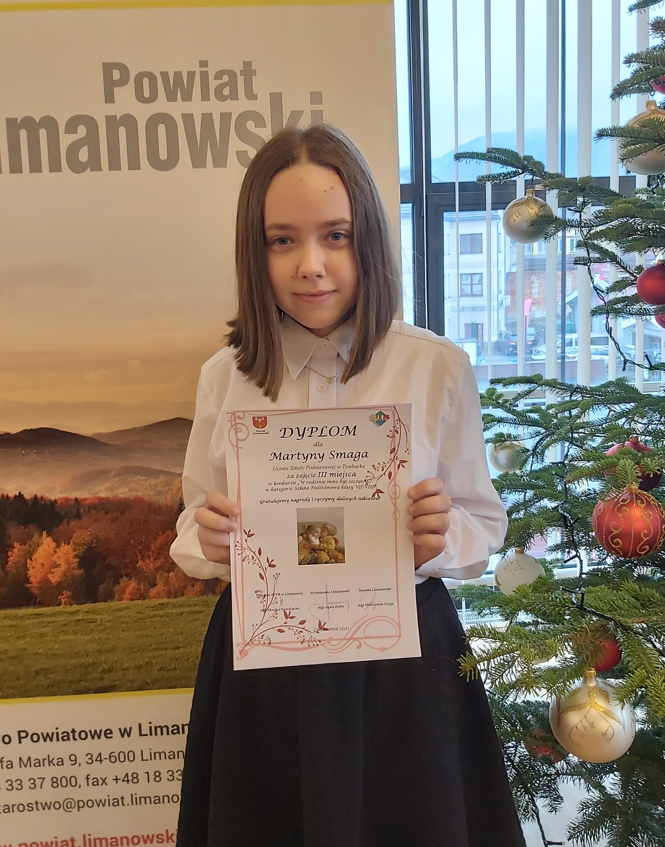 Martyna Smaga z klasy 7b została laureatką konkursu „W rodzinie może być szczęście” organizowanego przez Powiatowe Centrum Pomocy Rodzinie w Limanowej. Konkurs ten realizowany jest z myślą o promowaniu wśród dzieci i młodzieży z powiatu limanowskiego prawidłowych relacji w rodzinie oraz zachowań prospołecznych, wolnych od przemocy. W tym roku uczestnicy nadesłali aż 228 prac plastycznych i literackich. Wśród nich znalazło się opowiadanie Martyny, które zapewniło jej trzecie miejsce w konkursie. Gratulujemy!