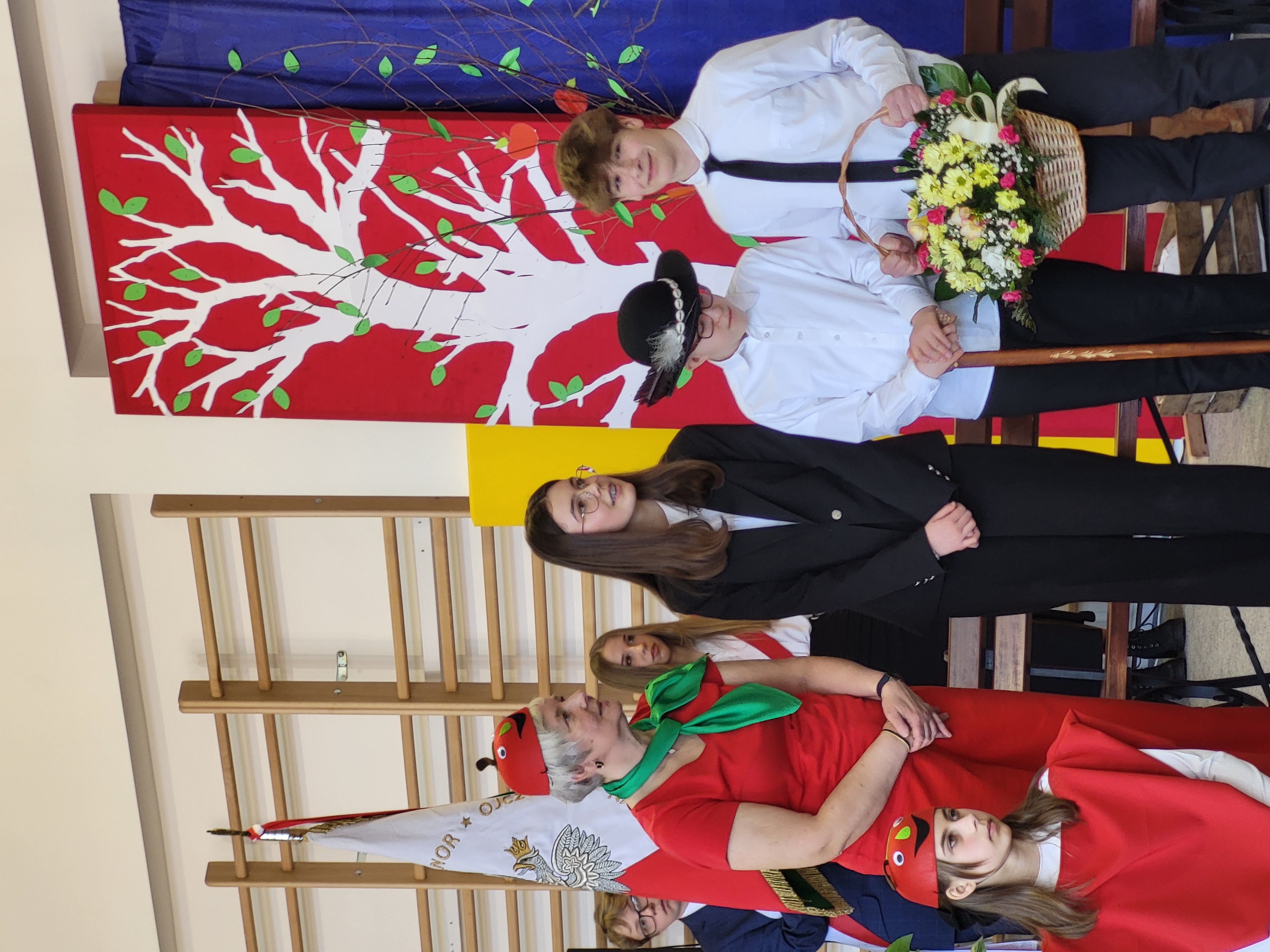 Potem nastąpiła część artystyczna - uczniowie klasy 8B wraz z wychowawczynią, panią Barbarą Janczy, zaprezentowali inscenizację do "Śpiewanki o Józefie Marku" wykonanej przez chór szkolny i orkiestrę. Obejrzeliśmy również taniec ludowy w wykonaniu "Małego Tymbarku".