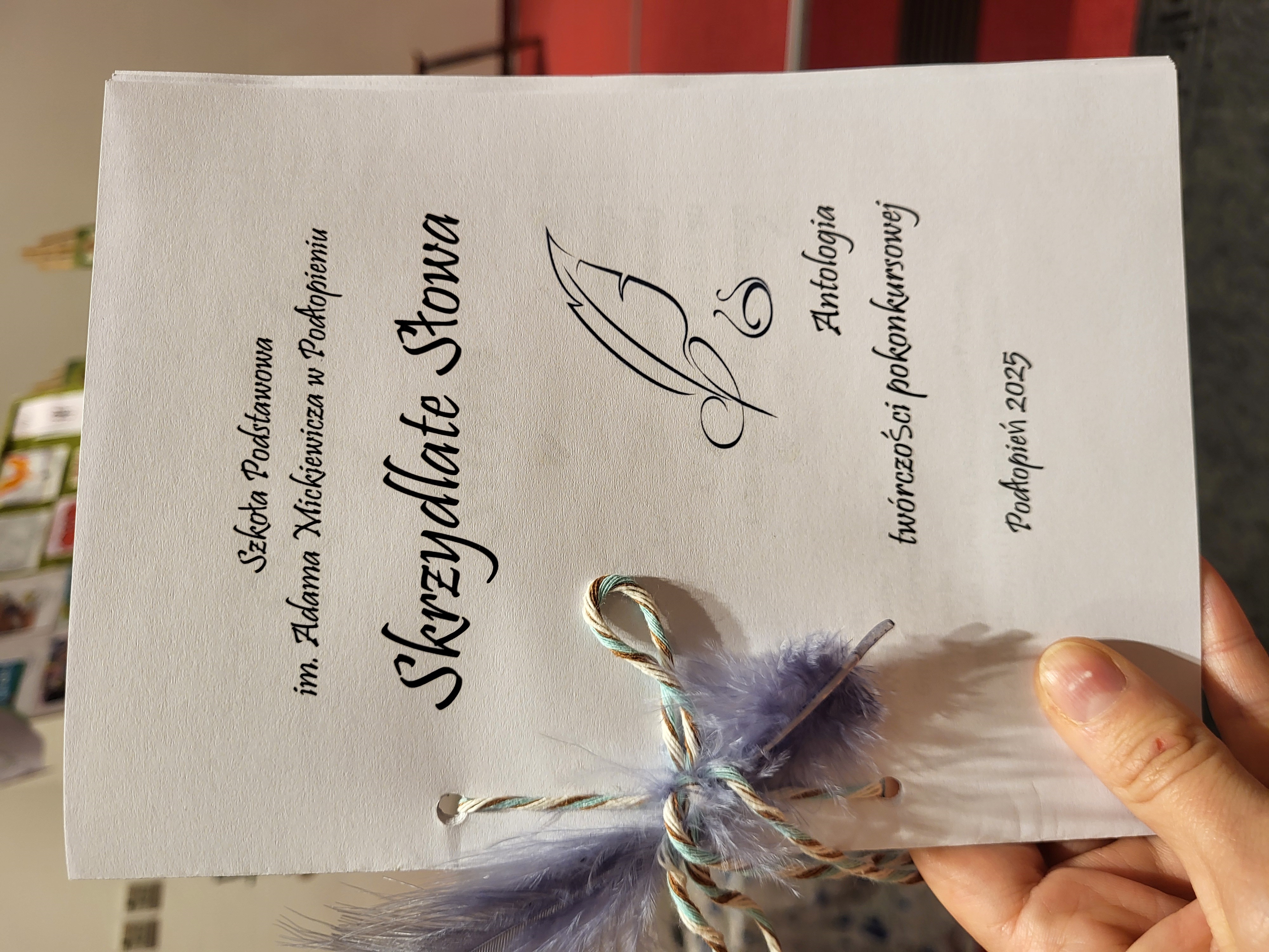 25 lutego w Bibliotece Publicznej odbyła się uroczysta gala - podsumowanie IV Gminnego Konkursu Literacko - Plastycznego "Skrzydlate Słowa" organizowanego przez Szkołę Podstawową im. Adama Mickiewicza w Podłopieniu. Naszą szkołę w etapie gminnym reprezentowało dwanaścioro uczniów - Tobiasz Ryś, Maria Ślimak, Lena Knap, Aleksandra Bulanda, Tadeusz Bielski, Laura Orzeł, Karolina Baran, Zuzanna Piwowarczyk, Yeva Balaisa, Faustyna Trzópek, Alicja Duda i Sara Wdowicka. Wykonali oni piękne prace literackie i plastyczne nawiązujące do najcenniejszych wartości, by pokazać, jak ważne są dla nich przyjaźń, miłość, rodzina, piękno, radość czy wytrwałość.
