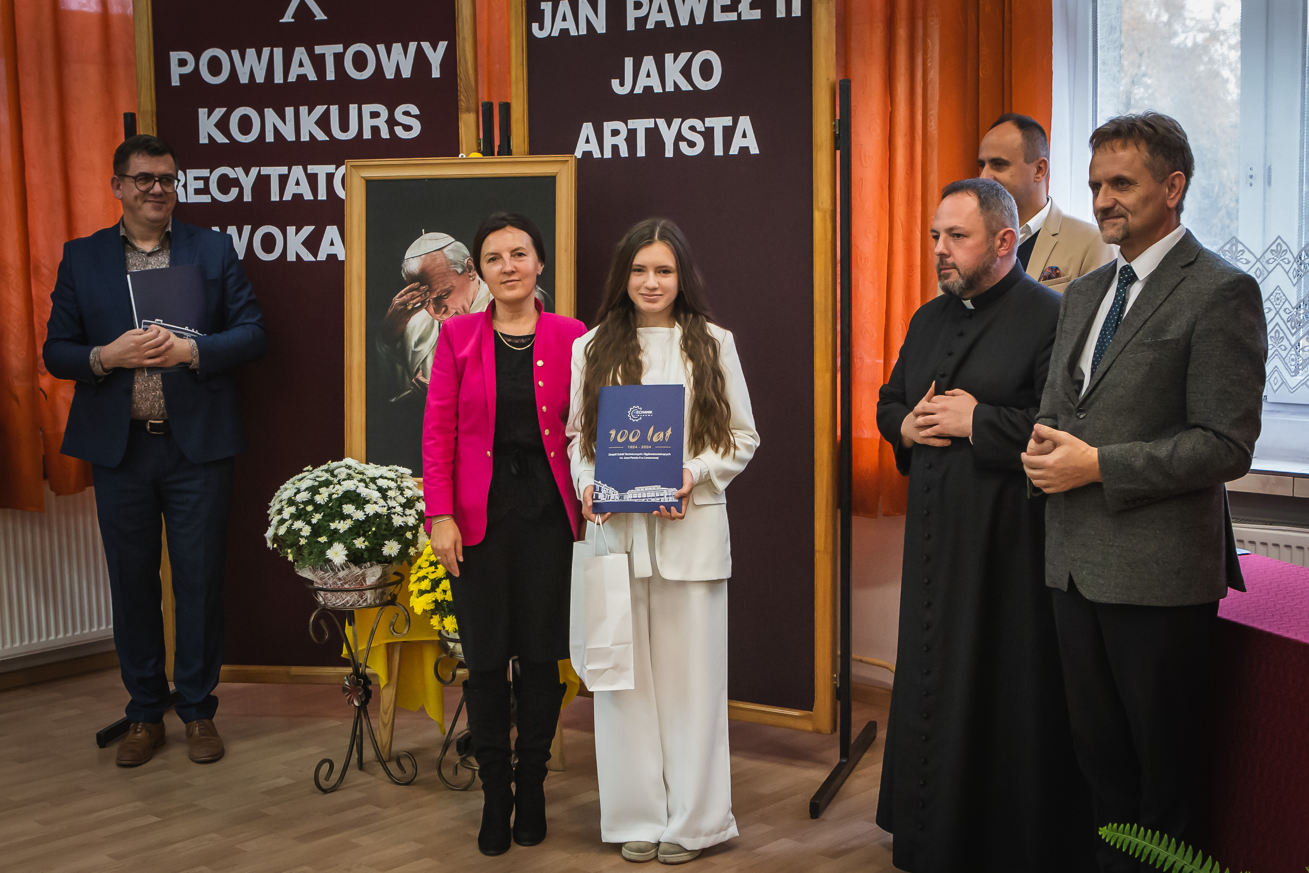 17 października 2025r. odbył się X Powiatowy Konkurs Wokalno - Recytatorski "Jan Paweł II jako artysta" organizowany przez Zespół Szkół Technicznych i Ogólnokształcących im. Jana Pawła II w Limanowej. Tegoroczne hasło tego wydarzenia to "Jan Paweł II - Poeta Nadziei". Celem konkursu było przybliżenie postaci Świętego Jana Pawła II jako artysty, upowszechnienie wartości głoszonych przez Papieża Polaka w jego twórczości, kształtowanie wrażliwości na piękno poetyckiego języka, prezentacja zdolności recytatorskich uczniów szkół podstawowych i ponadpodstawowych oraz prezentacja zdolności muzycznych uczniów szkół podstawowych i ponadpodstawowych. Konkurs adresowany był do uczniów klas 7 i 8 szkół podstawowych i ponadpodstawowych powiatu limanowskiego.